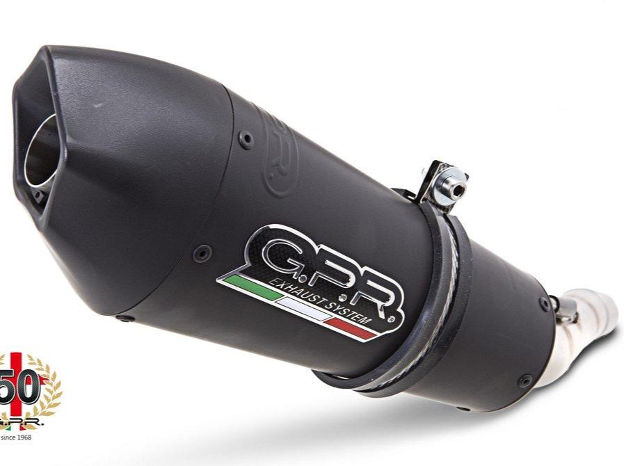 G.P.R. Exhaust Systems "GPE Anniversary Black Titanium" homologated slip-on exhaust silencer kit with double removable dB killer (baffle). Handmade in Italy.