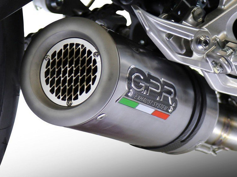 G.P.R. Exhaust Systems "M3 Titanium Natural" Moto3 World Champion replica dual slip-on silencers kit with double removable dB killer (baffle). Handmade in Italy.