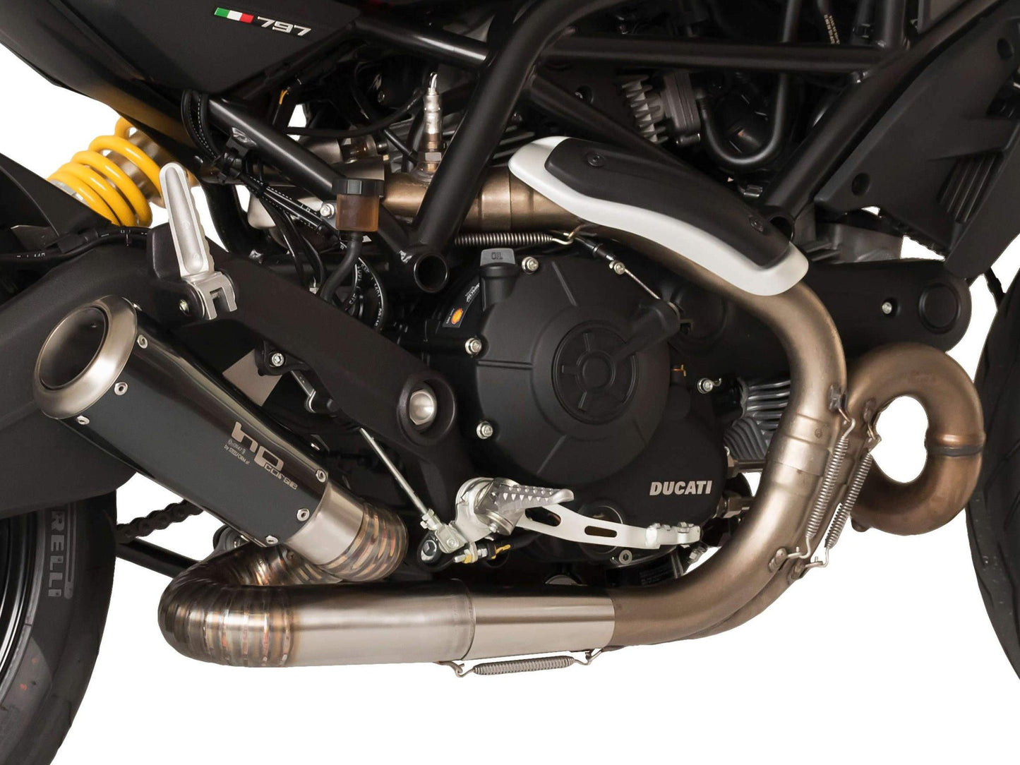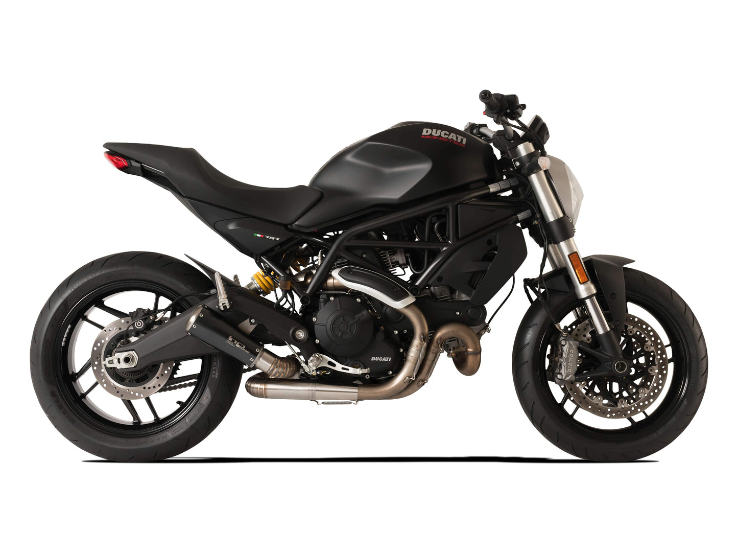 GP-07 BLACK by HP Corse for Ducati Monster 797 is pure sportiness, short and compact exhaust with aggressive and essential line.