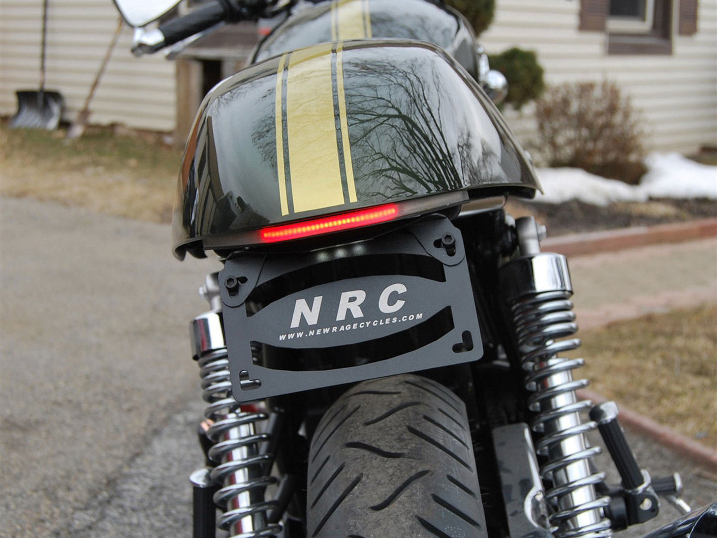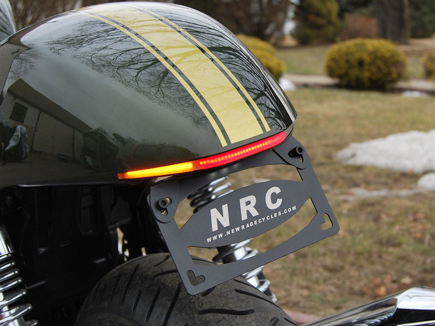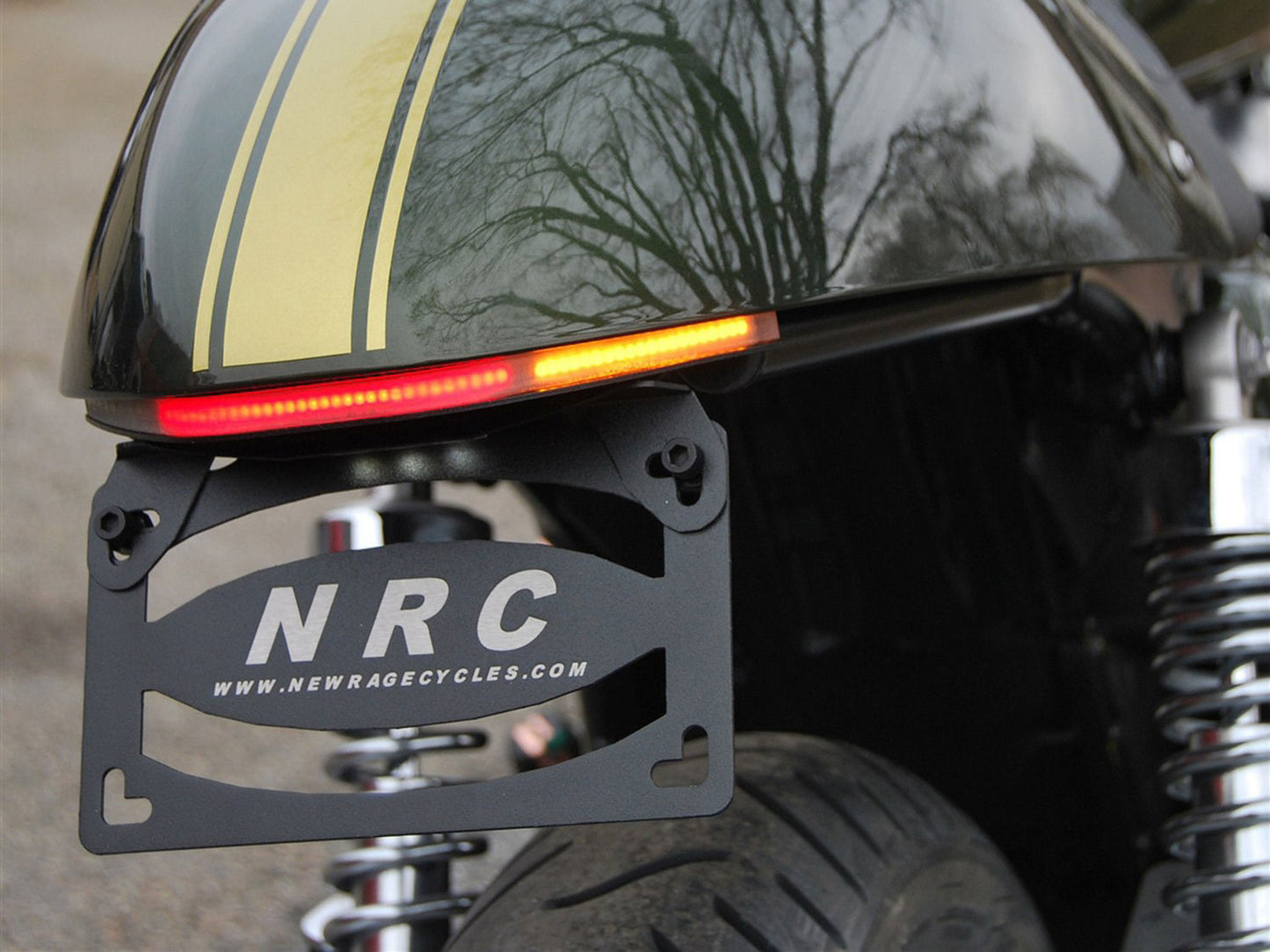 NRC hits the market with a custom designed fender eliminator kit for Triumph Thruxton 900. This kit cleans up the back of your bike with the brightest signals and brake light on the market!