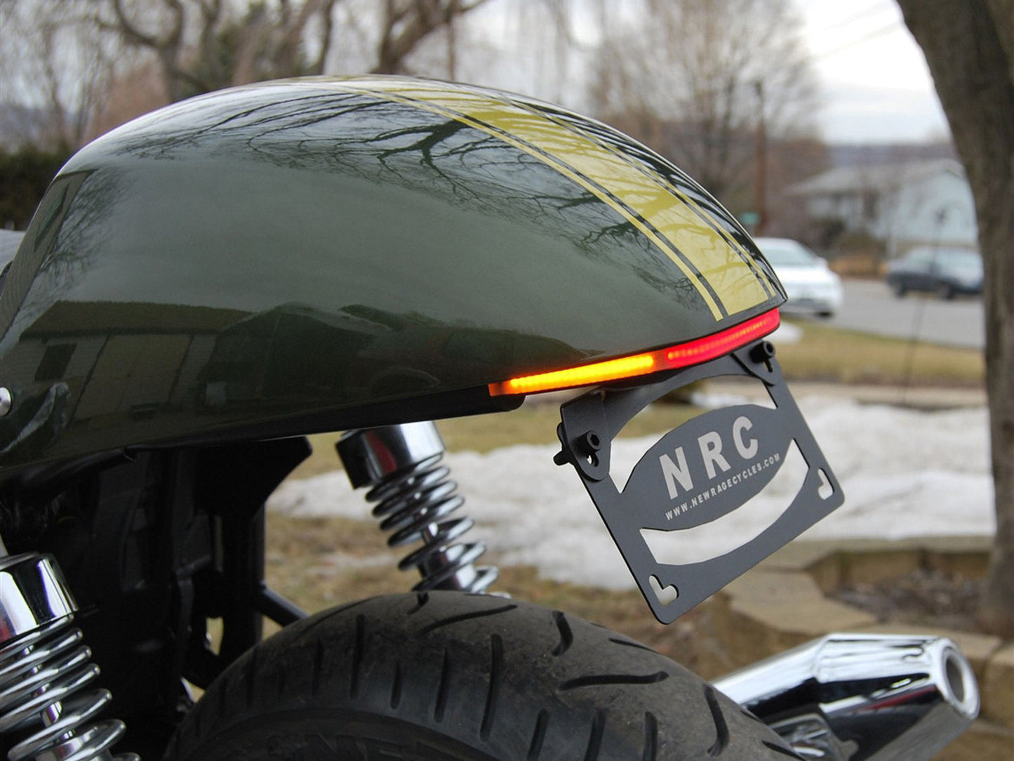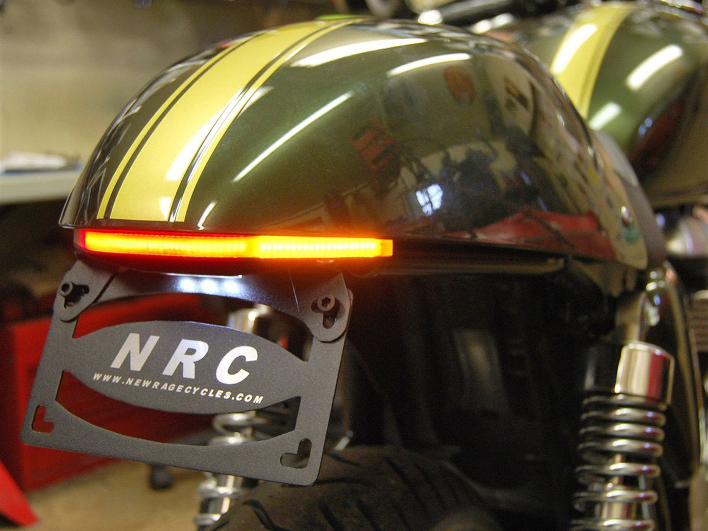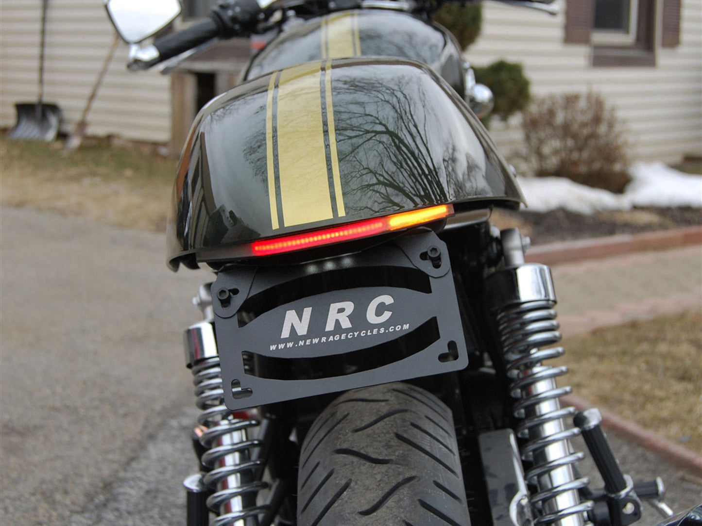 NRC hits the market with a custom designed fender eliminator kit for Triumph Thruxton 900. This kit cleans up the back of your bike with the brightest signals and brake light on the market!