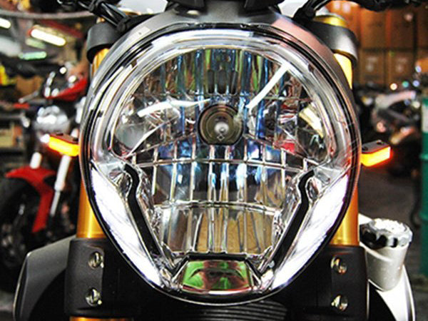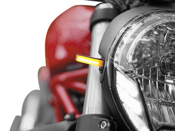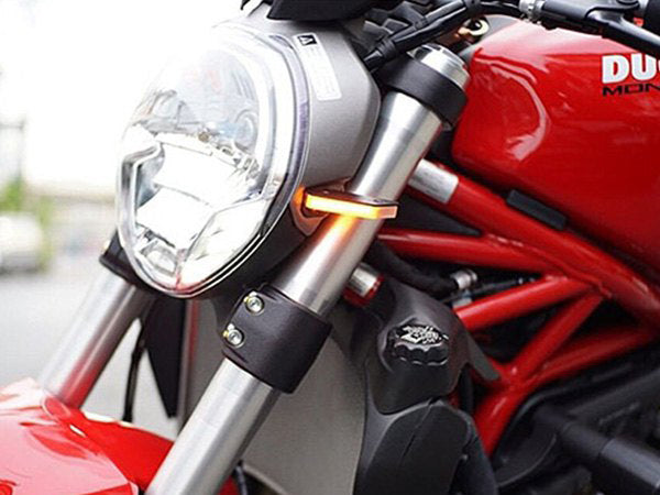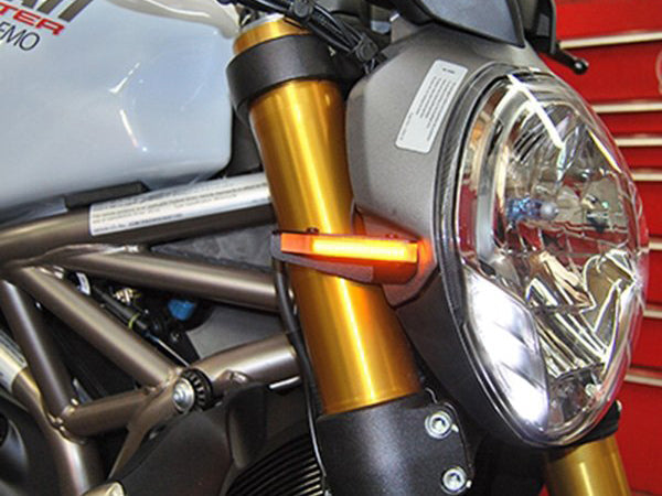 Custom designed LED front turn signals by New Rage Cycles for Ducati Monster 1200.