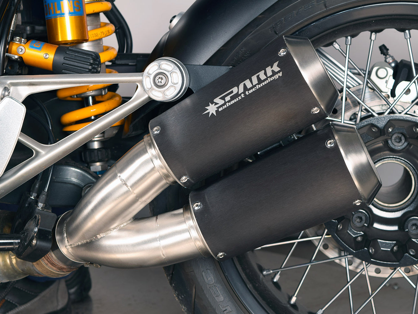 Racing dark style double slip-on exhaust for BMW R nineT by SPARK.