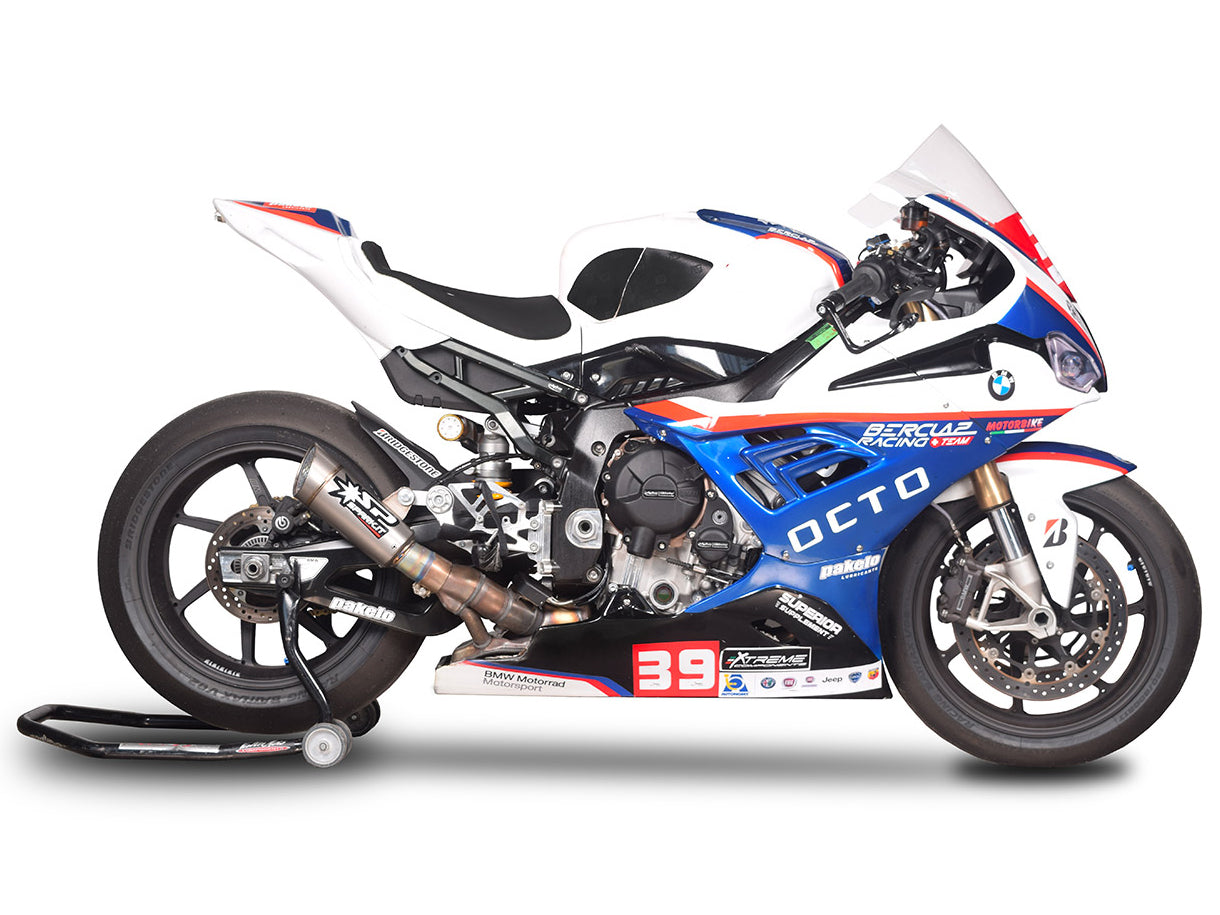 Titanium racing slip-on exhaust for original collectors for BMW S1000RR by SPARK.
