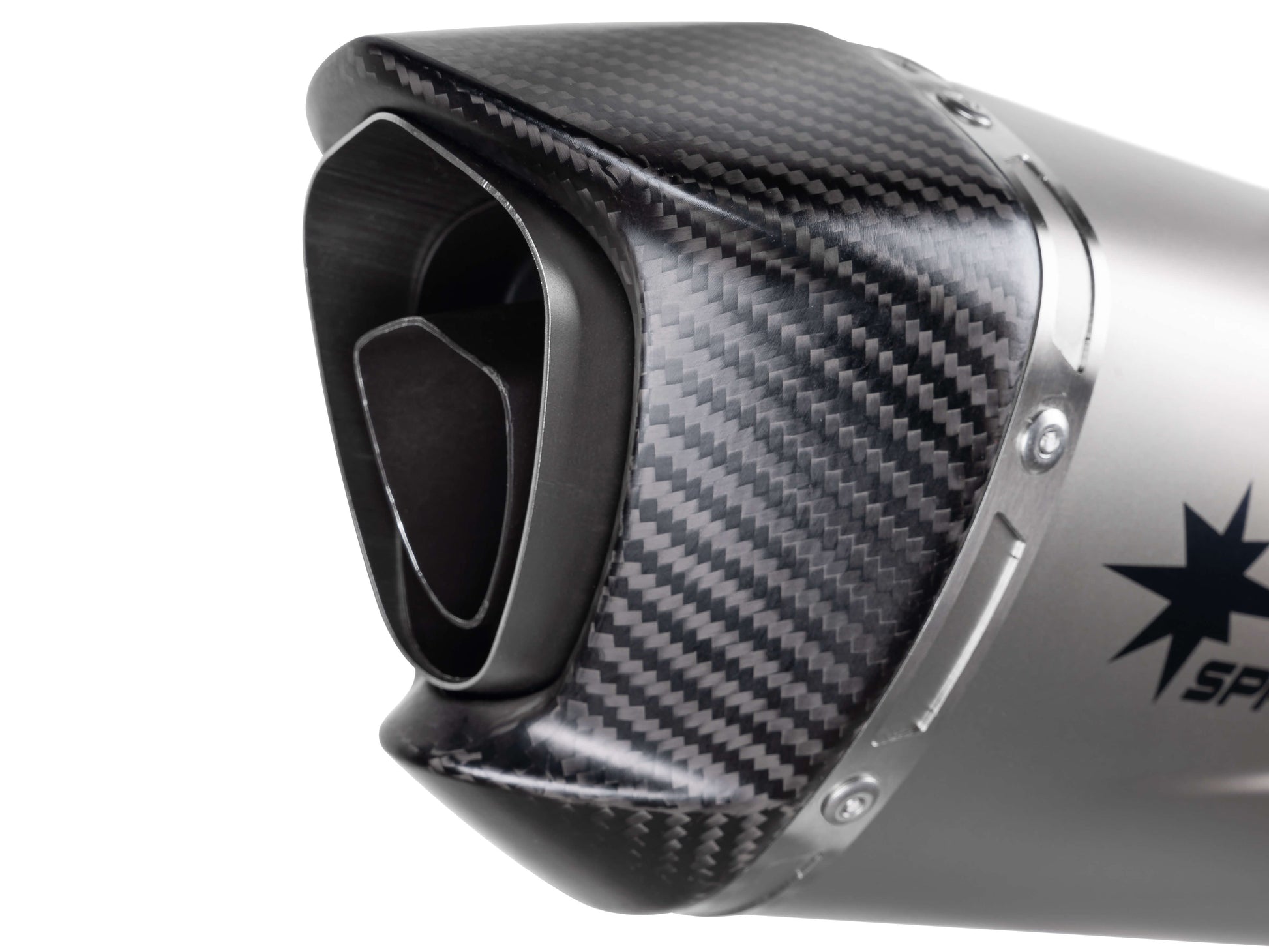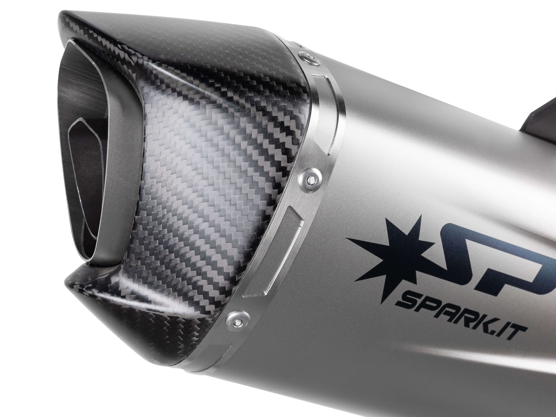 Elevate your ride with the titanium slip-on exhaust "Force EVO" by Spark Exhausts, designed specifically for the BMW R1300GS. Crafted from premium titanium, this exhaust system delivers unparalleled performance and aesthetics to enhance your riding experience. The "Force EVO" silencer not only offers a captivating sound but also boasts a sleek carbon fiber end cap, adding a touch of sophistication to your motorcycle's appearance.