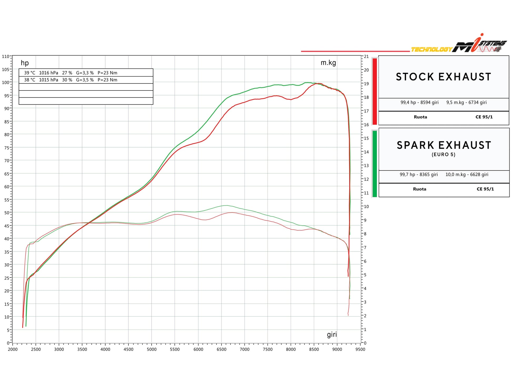 The "Fighter EVO" silencer, paired with its connecting pipe for standard mounting, is a testament to Spark Exhausts' dedication to innovation. Weighing just 2.7 kg compared to the stock counterpart's 4.0 kg, this street exhaust system showcases Spark Exhausts' commitment to reducing weight without compromising performance. By utilizing lightweight materials such as carbon for the end cap and titanium for all remaining components, the "Fighter EVO" ensures that lightness remains its defining feature.