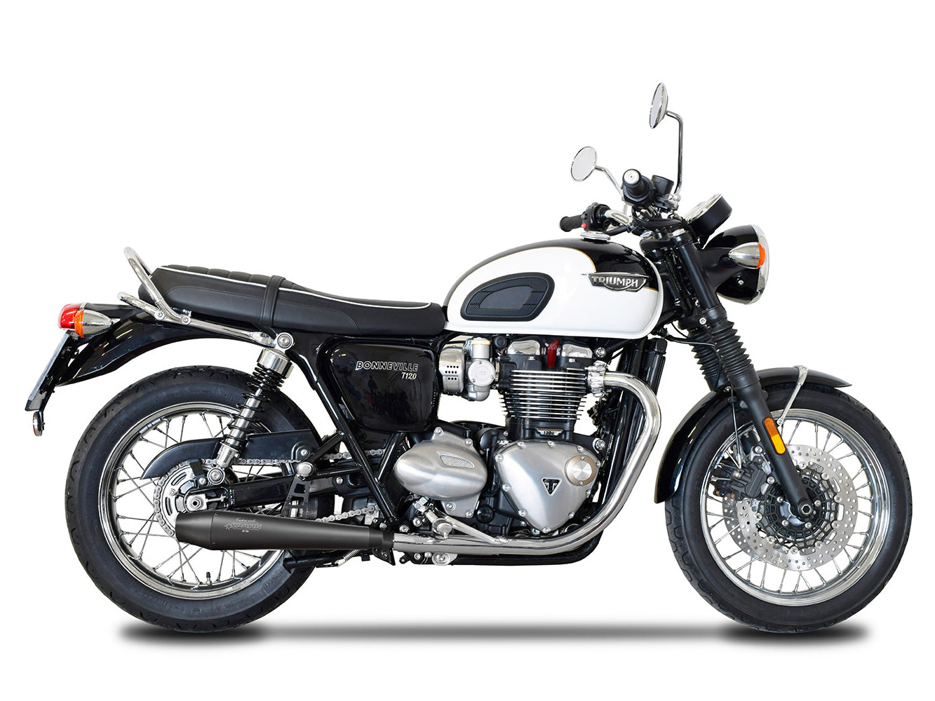 Double stainless steel (black series) slip-on exhaust for Triumph Boneville T120 by SPARK.