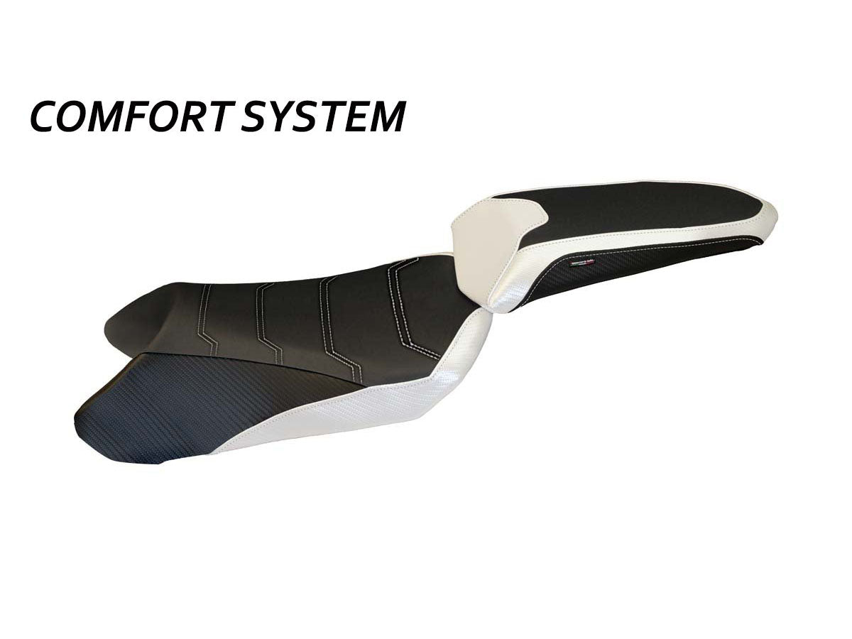 Exclusive seat cover made in black non-slip material and synthetic high quality leather. Laterals in black carbon look and inserts.