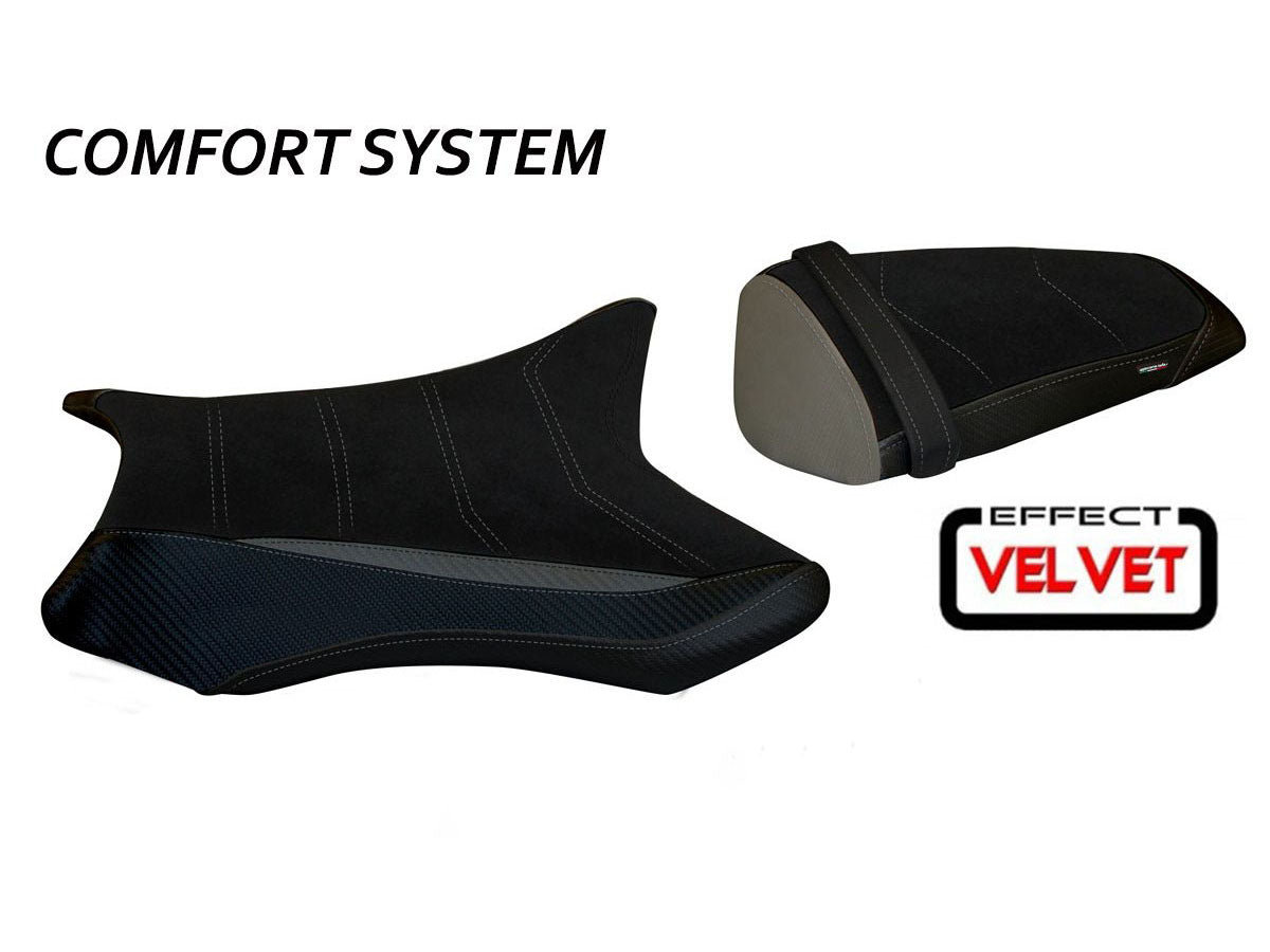 Exclusive seat cover made in black velvet effect above, black carbon look and inserts.